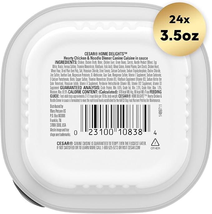 Cesar Home Delights Adult Wet Dog Food, Hearty Chicken & Noodle Dinner in Sauce, 3.5 oz. (24 Count, Pack of 1)
