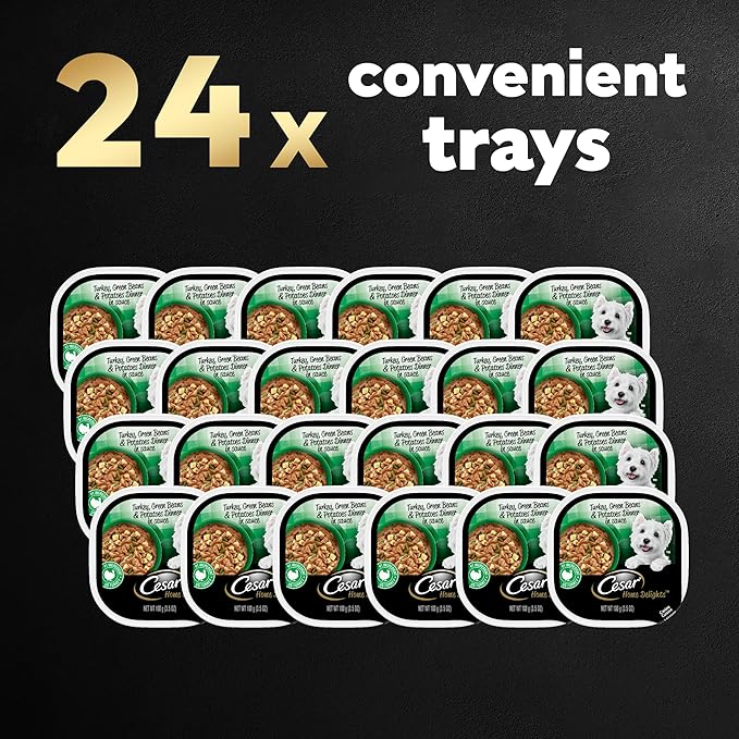 Cesar Home Delights Adult Wet Dog Food, Turkey, Green Beans & Potatoes Dinner in Sauce, 3.5 oz. (24 Count, Pack of 1)