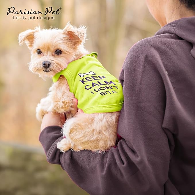 Parisian Pet Dog Tshirt - Embroidered “Keep Calm I Dont Bite “ Dogs Apparel - Breathable and Lightweight Doggy Clothes - Sleeveless Dog Tee Shirts - Machine Washable Shirts for Medium Dogs - M