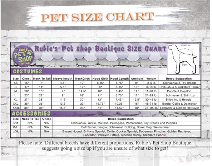 - SIZE MATTERS: Consult the Rubies pet size chart and watch the measuring instructions video to ensure you get the perfect fit.