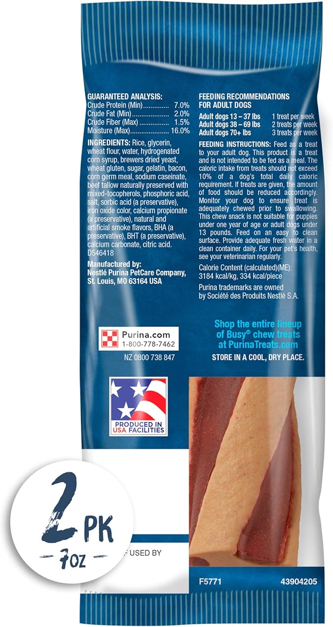 - Busy Bone twisted with the meaty goodness of Beggin'. Twisted marrow made with real bacon
