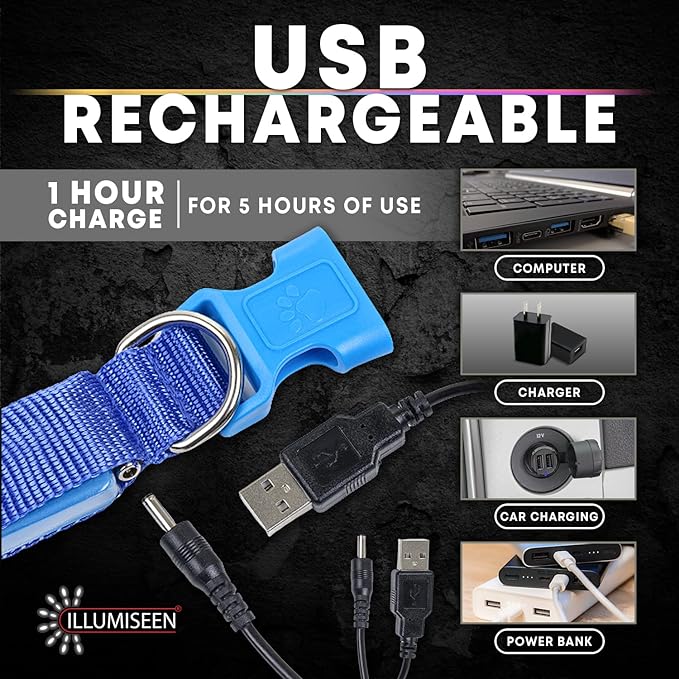 - HIGHEST VISIBILITY - unlike others, our LED dog collars provide the highest visibility and are built to last so your dog will be seen in the dark well in advance, providing protection from vehicles and other unexpected dangers during night walking. Perfect for use with Illumiseen matching dog leashes.