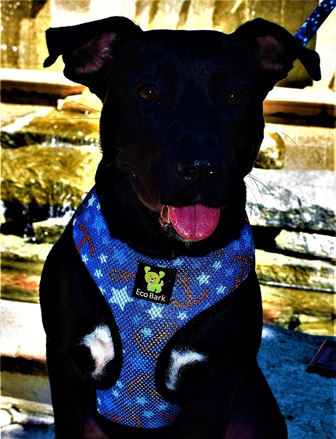 EcoBark Dog Harness - Eco-Friendly Max Comfort Harnesses - Luxurious Soft Mesh Halter - Over The Head Harness Vest- No Pull and No Choke for Large, XL, and XXL Dogs (XL, Nautical)