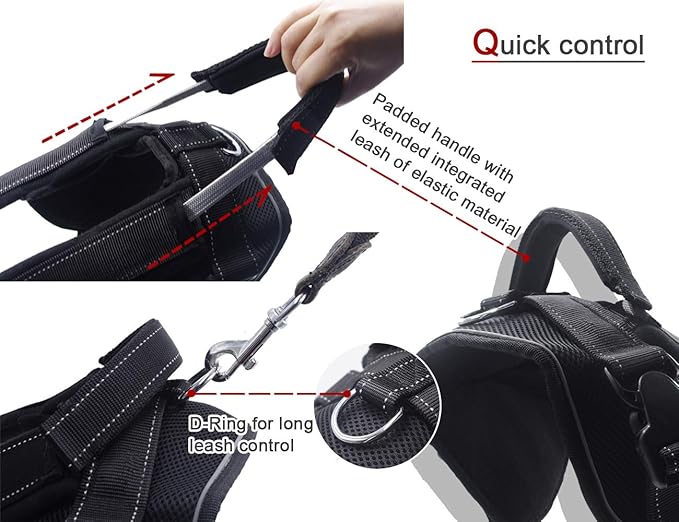 - QUICK CONTROL - Easy click buckles and adjustable straps, convenient to wear. D-Ring leash adapter, can use different leash when in different control circumstances like walking, training, outdoor sport, service training and vehicle-mounting.