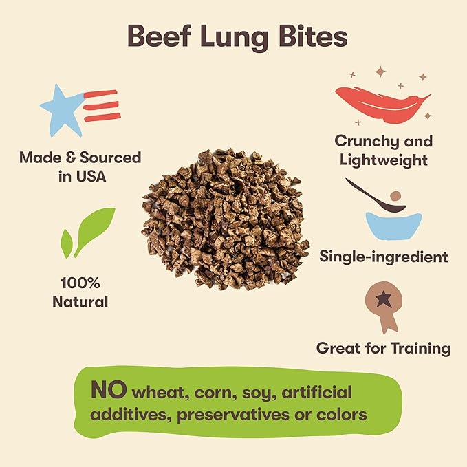 - Made in the USA – Pet 'n Shape beef lung treats are proudly made and sourced from America’s heartland.