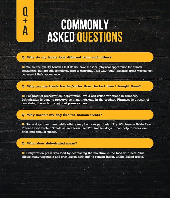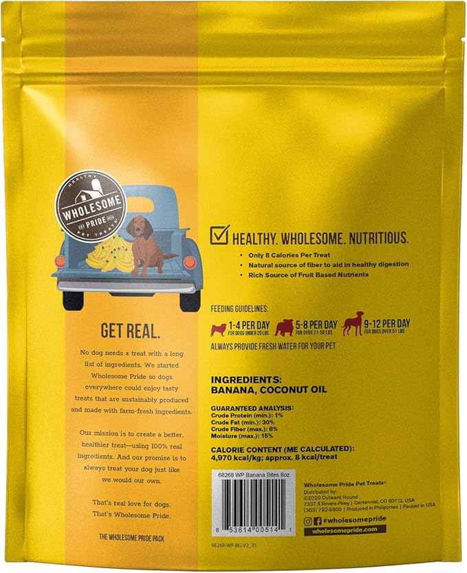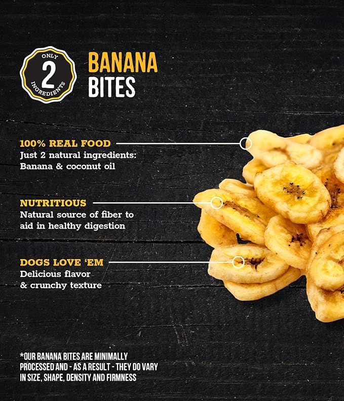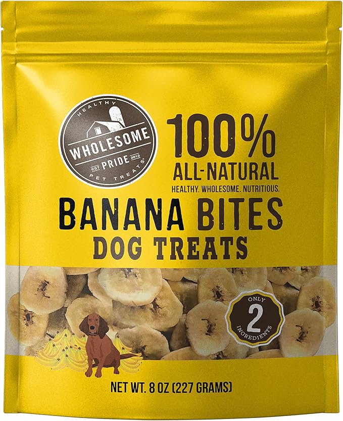 - Wholesome Pride Banana Bites are 2-ingredient dog treats made with only bananas and coconut oil for a natural, delicious option your dog will love