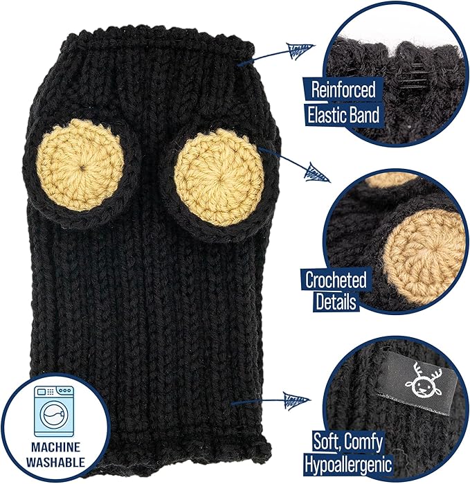 Zoo Snoods Black Bear Costume - Warm Knit Dog Snood Wrap for Pets, Neck Ear Cover Protection, Halloween Winter (Large)