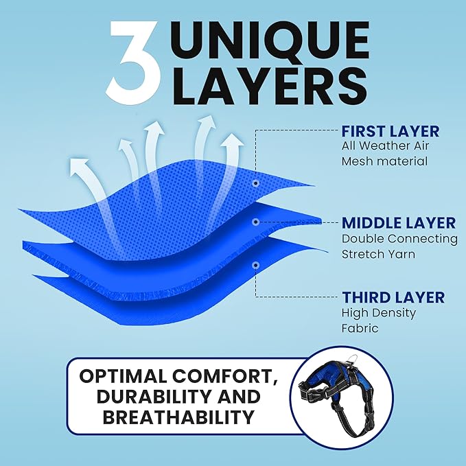 No Pull Reflective Adjustable Dog Harness With Handle- Comfortable Soft All Weather Mesh, Easy On Puppy Harness For Small Medium and Large Dogs (Blue) X-Large