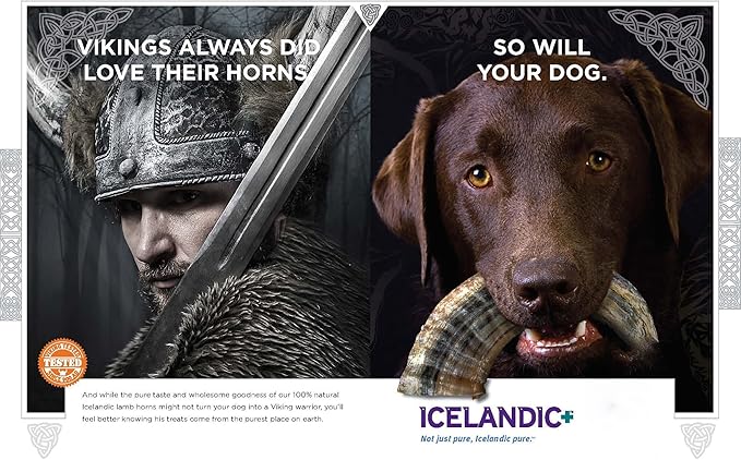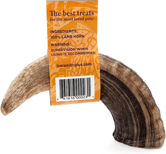 Icelandic+ Lamb Horn - Large - 7" Dog Chew, Long-Lasting Crunchy Treat, Medium & Large Dogs, Keratin, All-Natural, Pet Snack, Edible & Digestible
