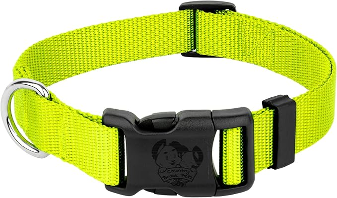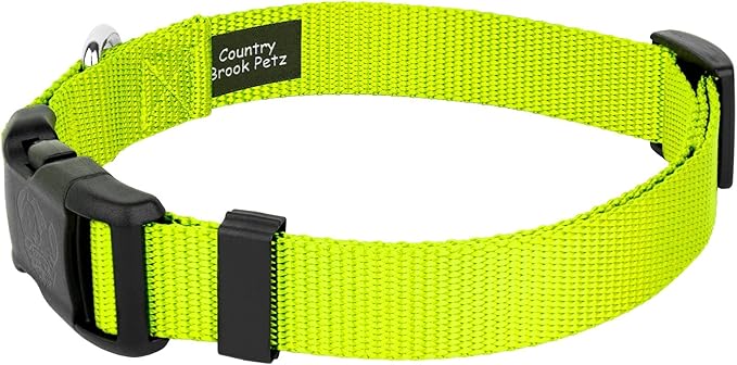 Country Brook Petz - American-Made Dog Collar for Large, Medium, and Small Dogs and Puppies - Deluxe Heavy Duty Nylon in 33 Dazzling Colors (Large, 1 Inch Wide, Hot Yellow)