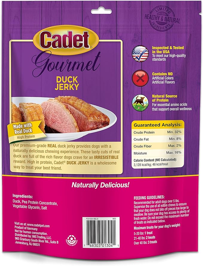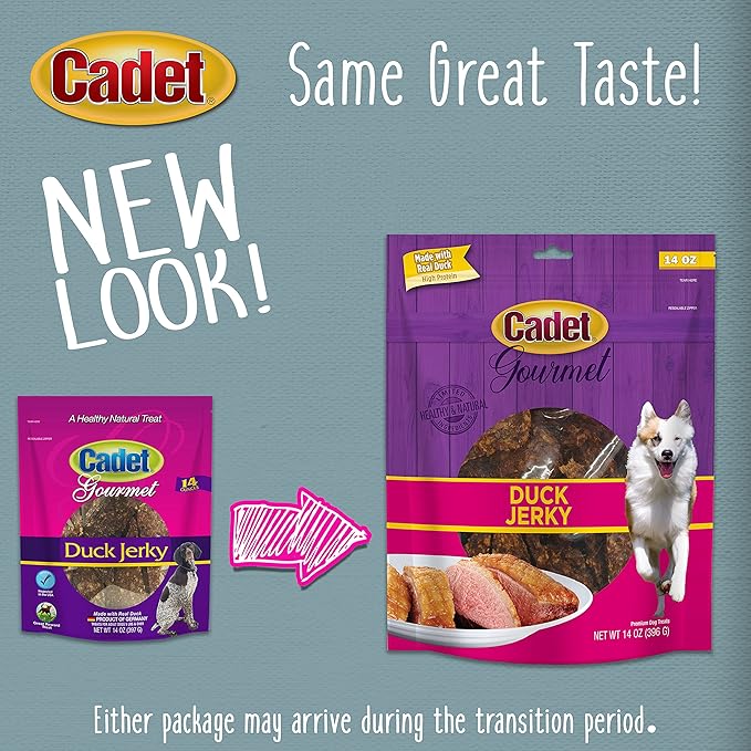 Cadet Gourmet Duck Jerky Dog Treats - Healthy & Natural Duck Dog Training Treats for Small & Large Dogs - Inspected & Tested in USA (14 oz.)