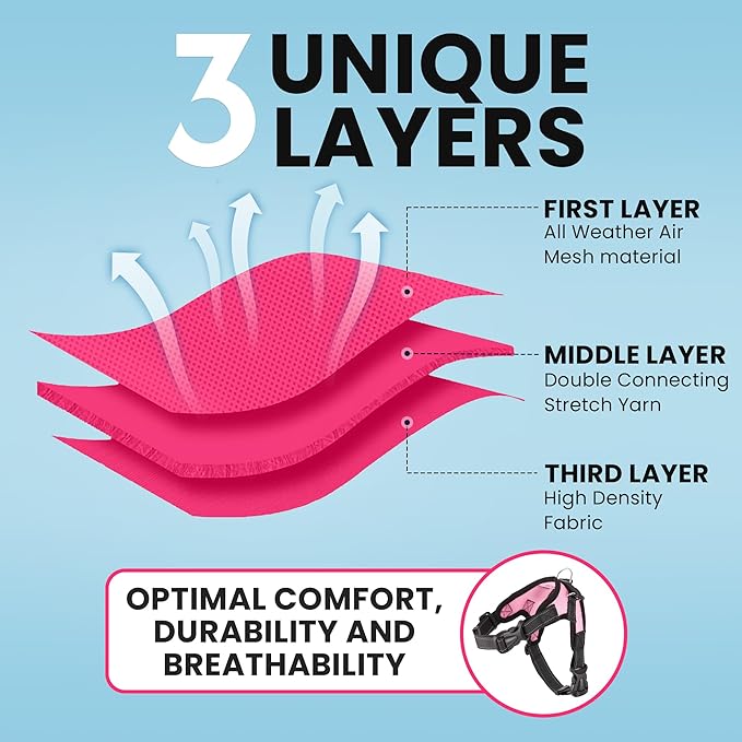 - All Weather Comfortable Mesh- Made with a soft breathable air mesh, this lightweight ultra comfortable pet harness is perfect for walks all year round with your Furry friend