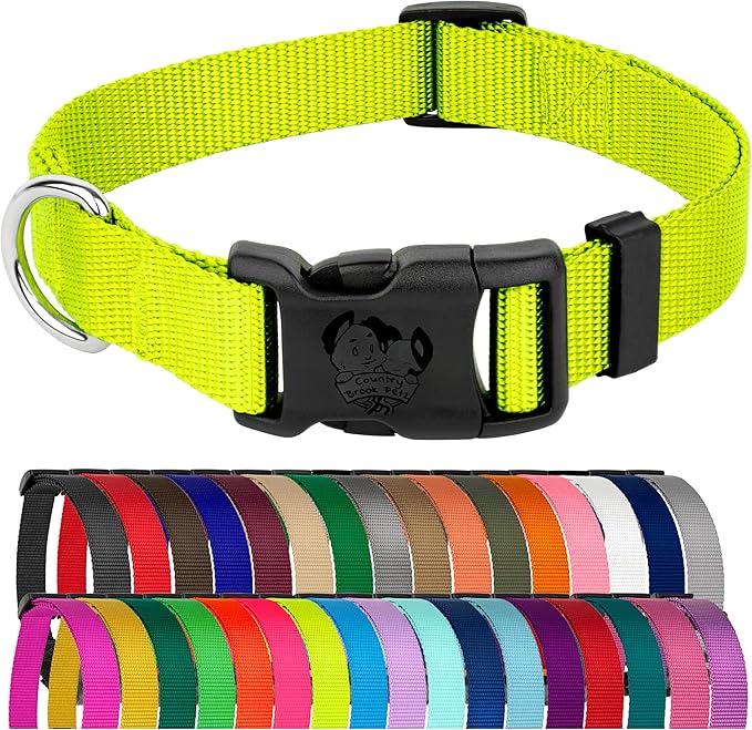 Country Brook Petz - American-Made Dog Collar for Large, Medium, and Small Dogs and Puppies - Deluxe Heavy Duty Nylon in 33 Dazzling Colors (Extra Large, 1 Inch Wide, Hot Yellow)