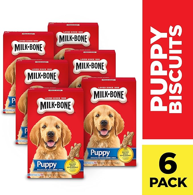 - Contains (6) 16 Ounce Boxes of Dog Biscuits for Puppies Under One Year