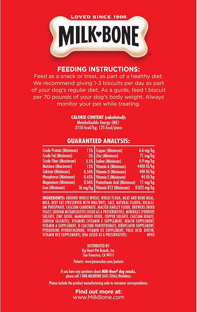 Milk-Bone Original Dog Treats for Large Dogs, 4 Pound (Pack of 2), Crunchy Biscuit Helps Clean Teeth