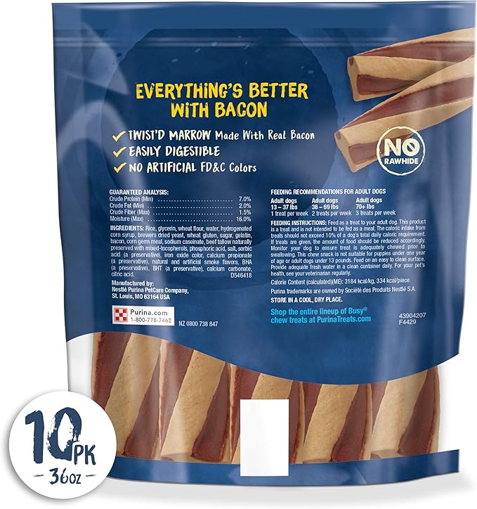 - Busy Bone twisted dog treat with the meaty goodness of Beggin'