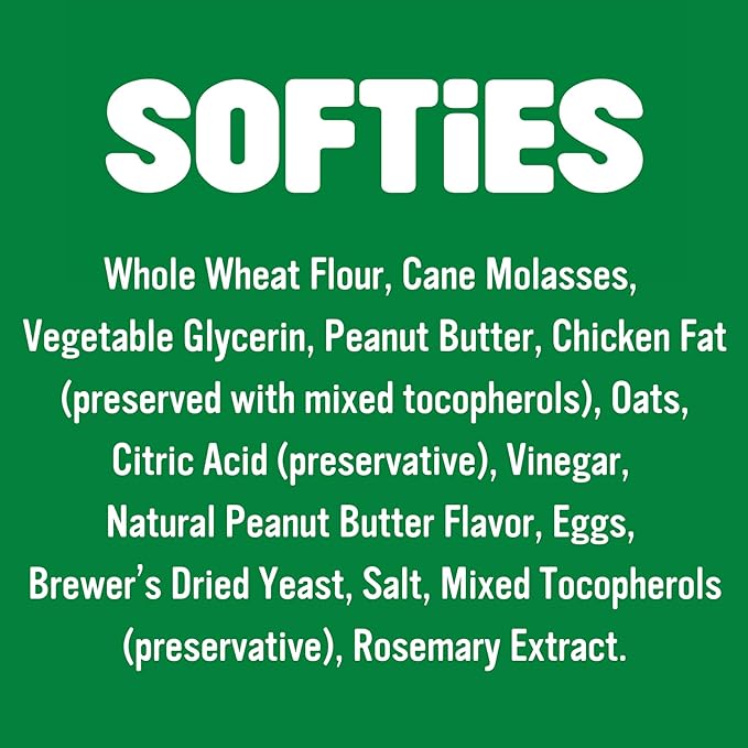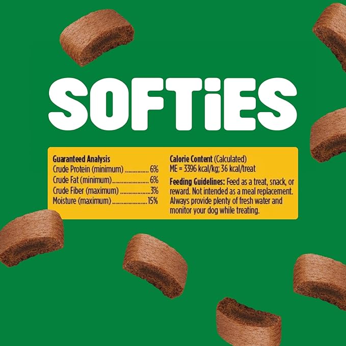 - SOFT-BAKED OUTSIDE, REAL PEANUT BUTTER INSIDE: The delicious taste of real peanut butter and blackstrap molasses in a soft treat; Softies are great for all ages and size dogs; 16.2 Ounce, 6 Pouches