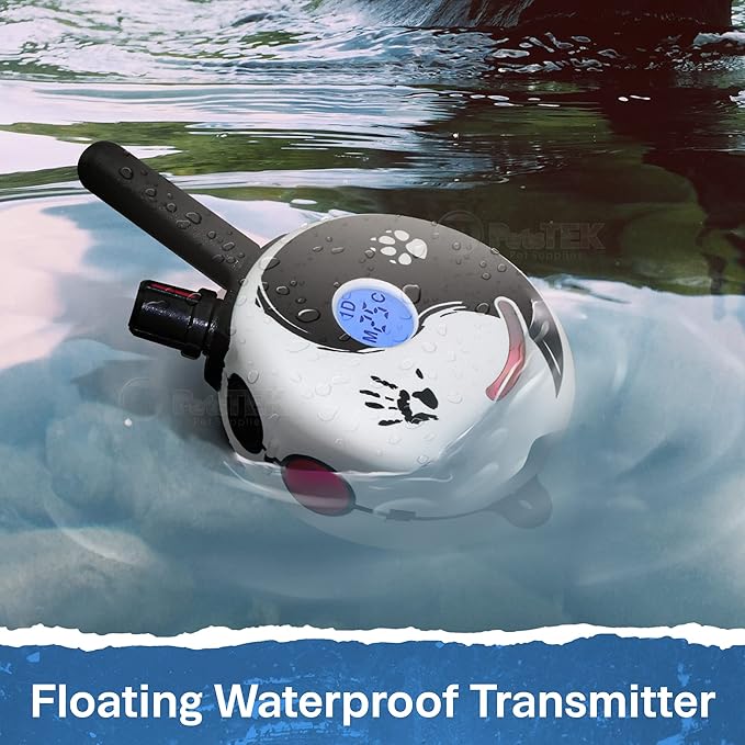 - Waterproof and Comfortable Pet Collar: Comes with a 6-30 inches adjustable strap for dogs 15 pounds or larger. This ecollar is waterproof up to 500 ft and the transmitter floats in water.