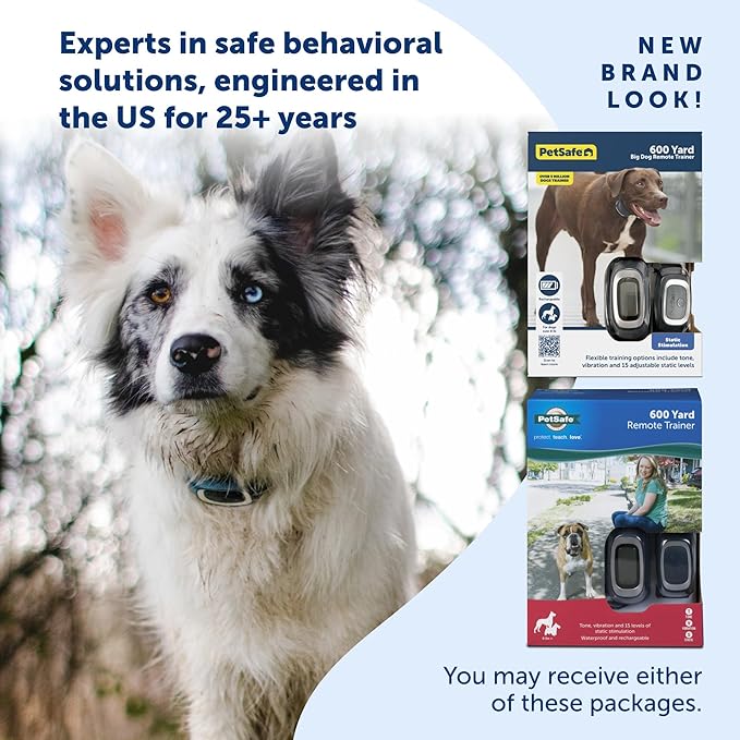 PetSafe 600 Yard Remote Training Collar – Choose from Tone, Vibration, or 15 Levels of Static Stimulation – Medium Range Option for Training Off Leash Dogs – Waterproof and Durable – Rechargeable