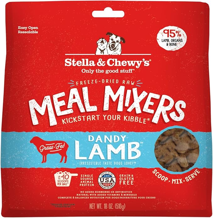 Stella & Chewy's Freeze-Dried Raw Lamb Meal Mixers- Dog Food Topper and Mixer - Made with 95% Grass-Fed Lamb, Organs & Bone - Perfect for Picky Eaters - Grain-Free - 18 oz
