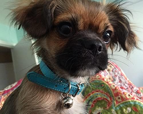 Turquoise Blue Leather Pet Collars for Cats Puppy, Adjustable 8"-10.5" Kitten Collar with Bell