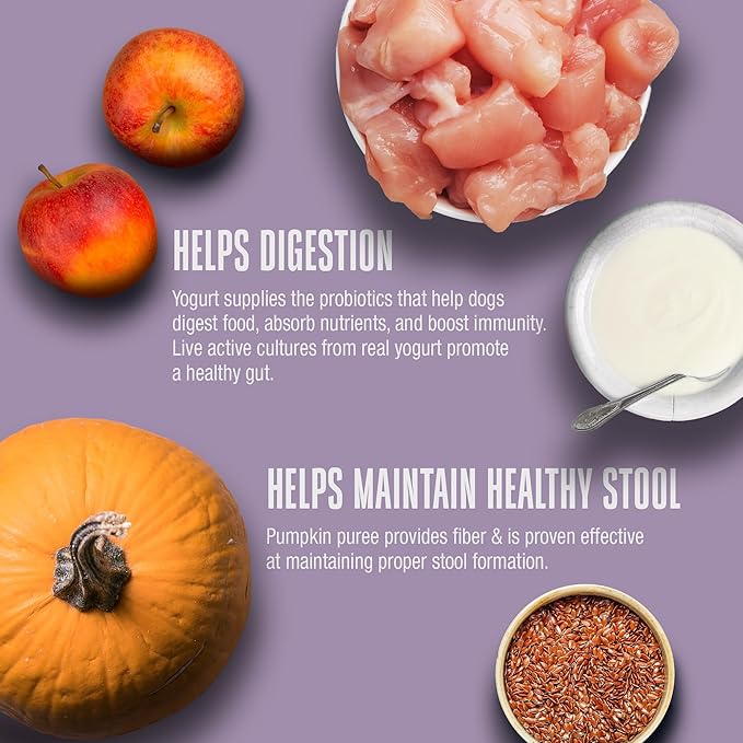 - DOG DIGESTIVE SUPPORT MADE SIMPLE: Keep your dog's tummy happy with our probiotic-packed dog treats! Featuring real USDA chicken and gut-friendly Greek yogurt, these nutritious probiotic treats promote digestion while satisfying even the pickiest eaters.