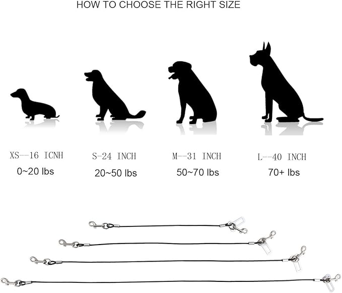 - "L" SIZE: 40" length, totally 4 size from 16" to 40" inchs for Small, Medium, Large, and X-Large dogs.suitable for many kinds of pets with different weight, please measure from your dog's harness clip to your car's latch bar to determine best size.we believe all your request will be satisfied.