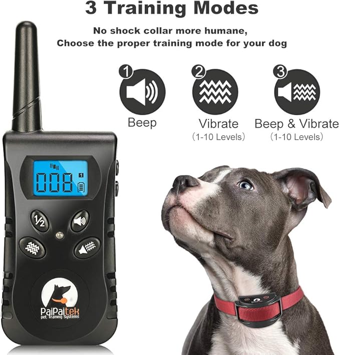 PaiPaitek No Shock Dog Training Collar with Remote, Lightest Vibration Collar for Small Dogs 5-15lbs & Medium Large Dogs, Rechargeable, Waterproof, 1600ft Range, No Prongs