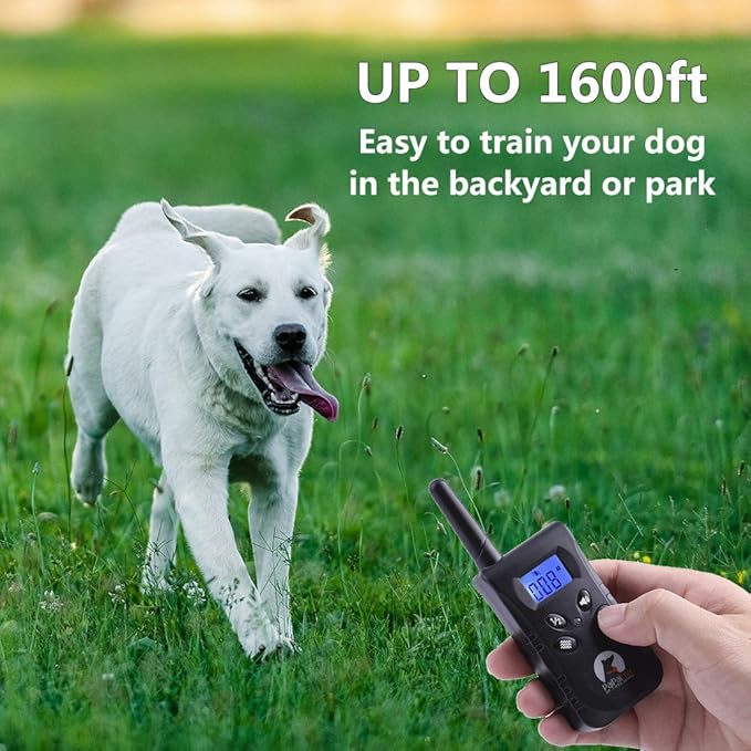 - UP TO 1600FT REMOTE RANGE & IPX7 WATERPROOF - No shock dog collar with remote up to 1600ft control range, easy to train your dog in the backyard, park and beach. 100% waterproof vibration dog collar lets your dog enjoy swimming and playing in the rain.