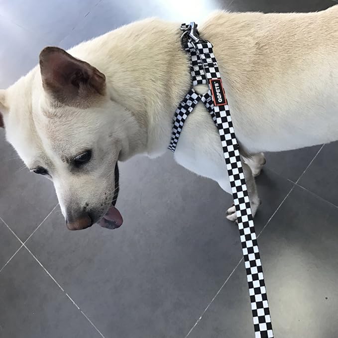 QQPETS Dog Harness Leash Set Adjustable Heavy Duty No Pull Halter Harnesses for Small Medium Large Breed Dogs Back Clip Anti-Twist Perfect for Walking (XS(12"-18" Chest Girth), Black Plaid)