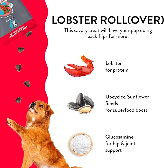 - Soft Baked Biscuits: Shameless Pets Lobster Roll(over) Soft Baked Biscuits are a healthy indulgence perfect for training any dog, from puppy to senior. This savory seafood flavor is naturally packed with glucosamine, which supports hip and joint health to have your pup doing back flips for more. Includes one 6oz pack of treats.