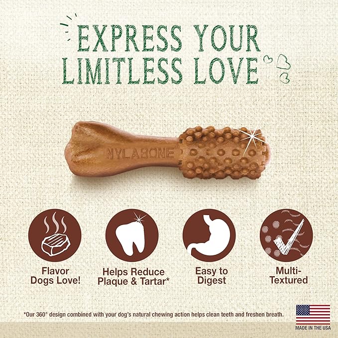 Nylabone Nutri Dent Dog Dental Chews - Natural Dog Teeth Cleaning & Breath Freshener - Dental Treats for Dogs - Filet Mignon Flavor, Mini (160 Count)