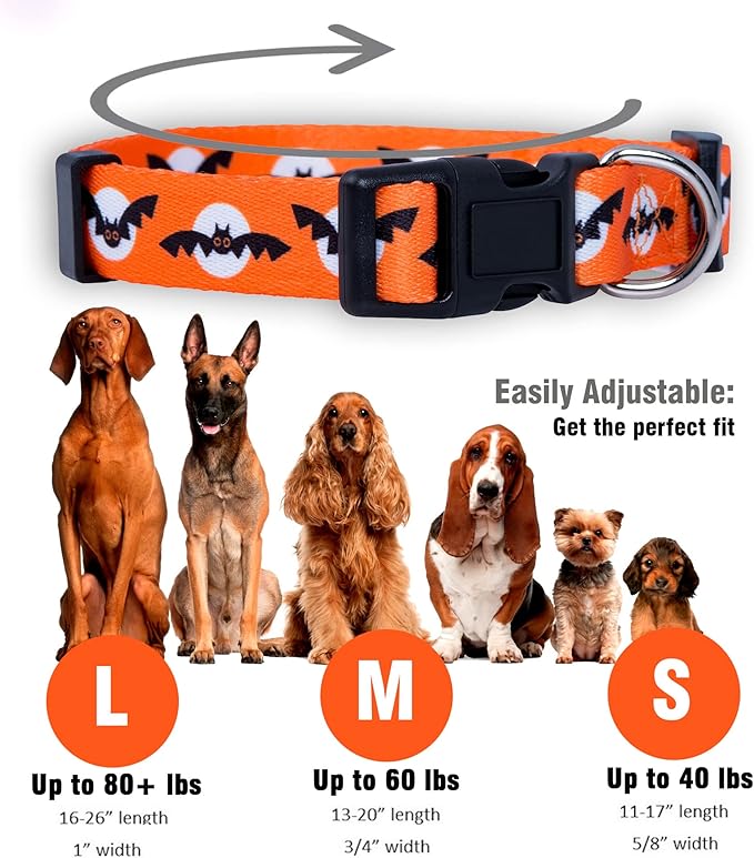 - ADJUSTABLE SIZE FOR ANY DOG - From Shih Tzu to St. Bernard, Native Pup has you covered. Offered in S, M, and L sizes, we have the perfect halloween collar for your pup. See the size chart in the pictures for optimal fitting for your dog.