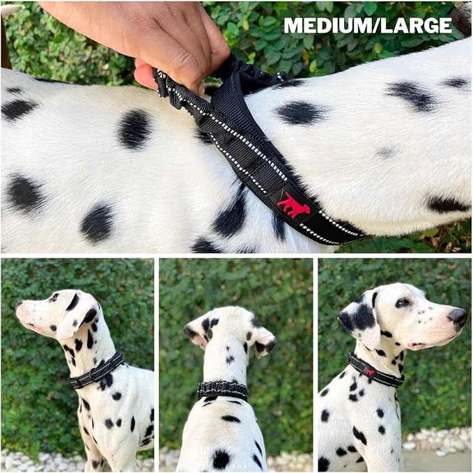 Tuff Pupper Heavy Duty Dog Collar with Handle | Ballistic Nylon Heavy Duty Collar | Padded Reflective Dog Collar with Adjustable Stainless Steel Hardware | Convenient Sizing for All Breeds