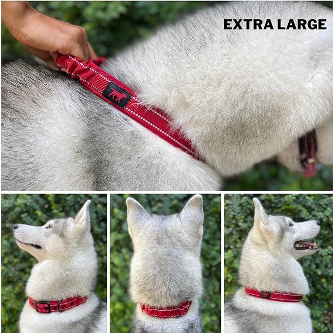 Tuff Pupper Heavy Duty Dog Collar with Handle | Ballistic Nylon Heavy Duty Collar | Padded Reflective Dog Collar with Adjustable Stainless Steel Hardware | Convenient Sizing for All Breeds