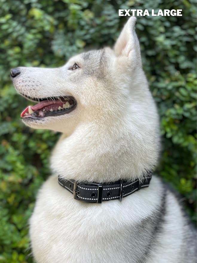 Heavy Duty Dog Collar with Handle | Ballistic Nylon Heavy Duty Collar | Padded Reflective Dog Collar with Adjustable Stainless Steel Hardware | Convenient Sizing for All Breeds X-Large (19-23" Neck)