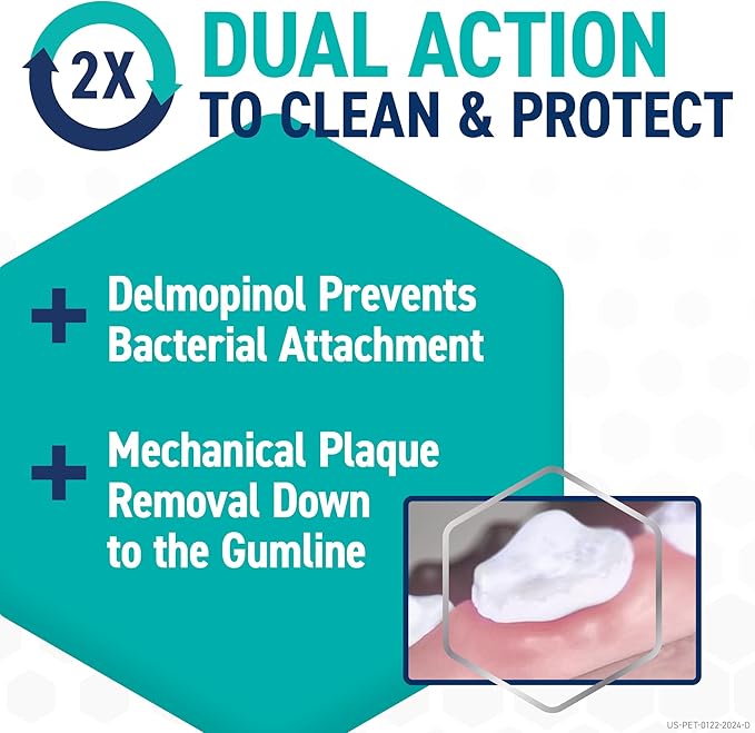- Help keep your dog's teeth cleaner, reduce plaque and tartar build-up, and fight bad breath with the chew veterinarians give to their own dogs, the first and only dental care product for dogs containing delmopinol. (Data on file at Boehringer Ingelheim.)
