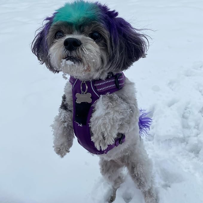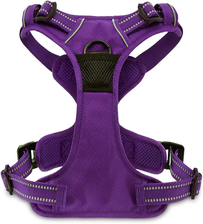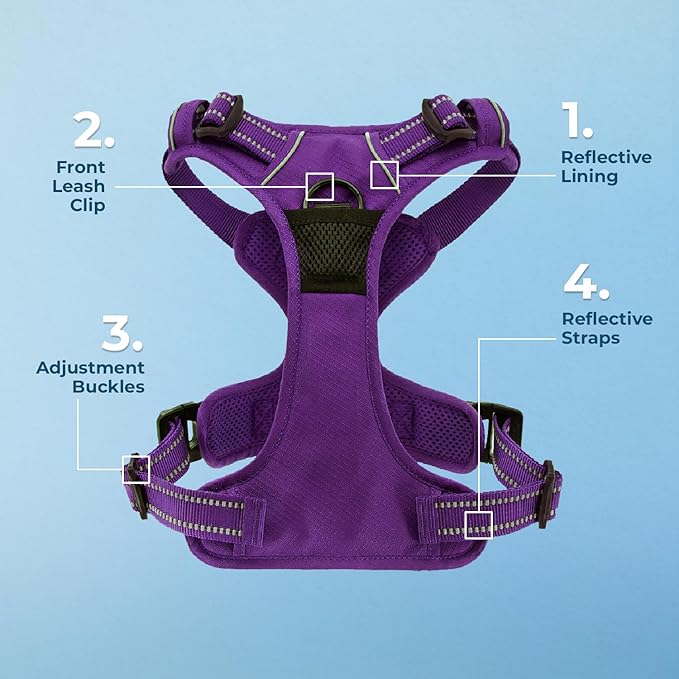 No Pull Dog Harness for Large Dogs, Dual Leash Attachments, Adjustable Soft but Strong Pet Harness with 3M Reflective Technology, Purple Lattice Nylon, M (Chest: 20-25")