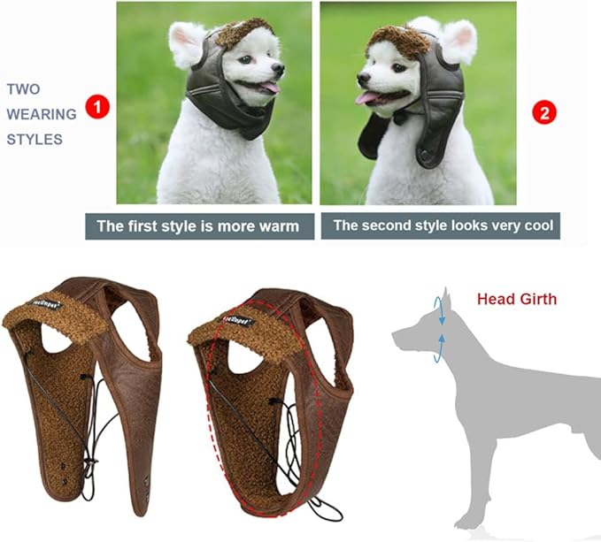 - 【Durable & Windproof & Warm Material】: Dog aviator hat is made of PU leather+teddy cashmere which is durable that can provide a long time use and fantastic windproof function. Teddy cashmere is soft and comfortable, keep dog warm in cold winter.