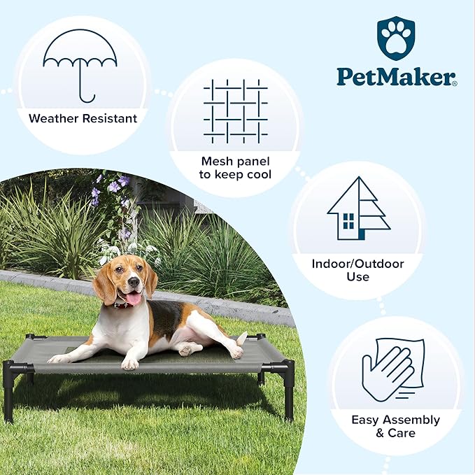 Elevated Dog Bed - 30x24-Inch Portable Pet Bed with Non-Slip Feet - Indoor/Outdoor Dog Bed or Puppy Cot for Pets up to 50lbs by PETMAKER (Gray)
