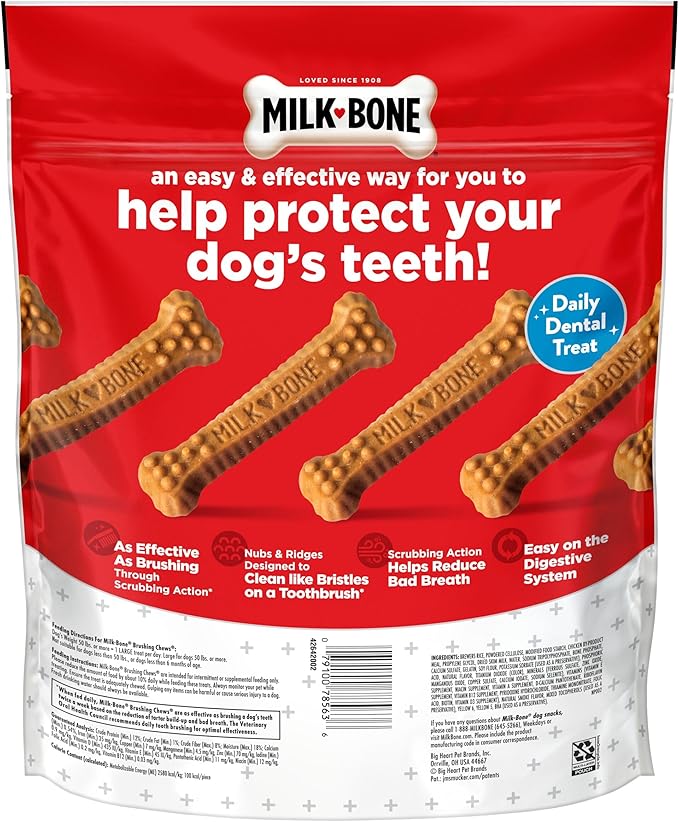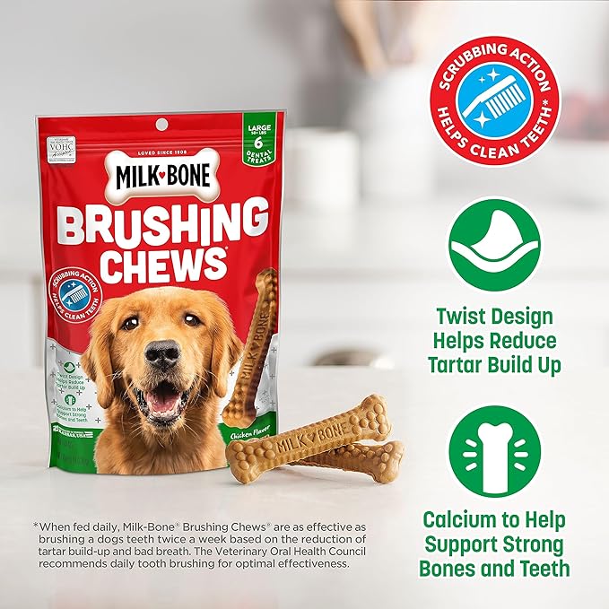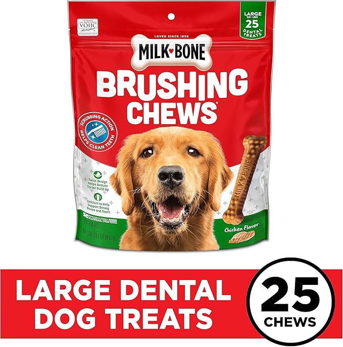 Milk-Bone Brushing Chews Daily Dental Dog Treats, Chicken Flavor, Large, 25 Count