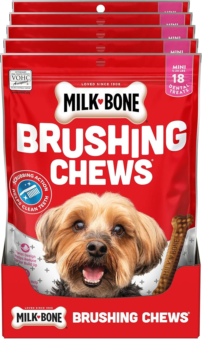 Milk-Bone Original Brushing Chews, 18 Mini Daily Dental Dog Treats (Pack of 5) Scrubbing Action Helps Clean Teeth