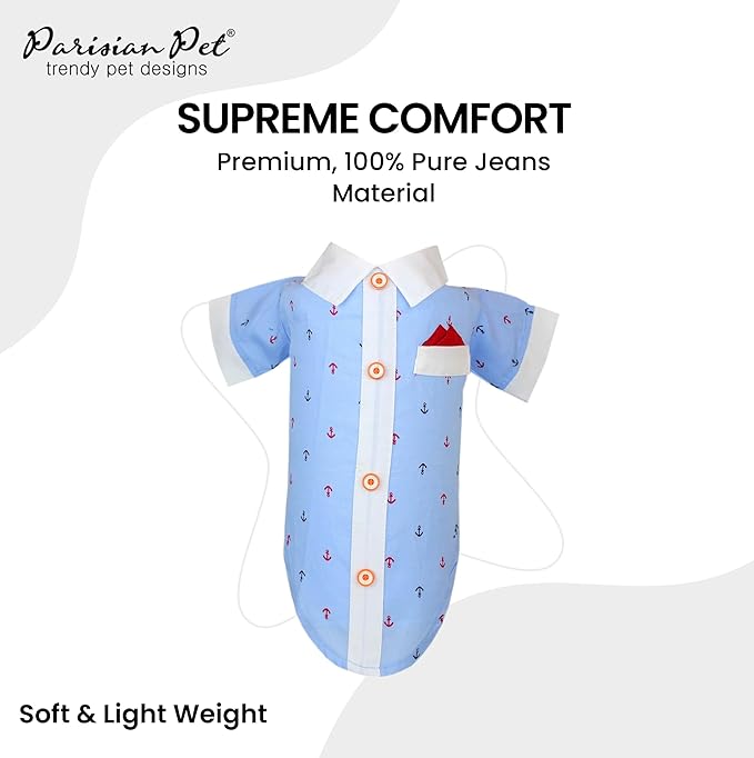 - [ STYLE WITH SUPERIOR QUALITY ] - Parisian Pet dog shirts feature a big collar and sleeved design, ensuring your pet's comfort. Made from 100% breathable cotton, these shirts are skin-friendly and perfect for keeping your pet cool during the heat of summer. Expertly stitched for durability, they are easy to wash and maintain, preserving their quality over time. These versatile cute dog shirts are suitable for occasional wear or everyday use.