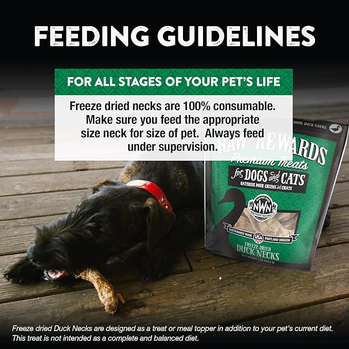 Northwest Naturals Raw Rewards Freeze-Dried Duck Neck Treats for Dogs and Cats - Whole Neck - Grain Free - 1 Ingredient - Healthy - Human Grade - All Natural - USA Made - 5 Oz