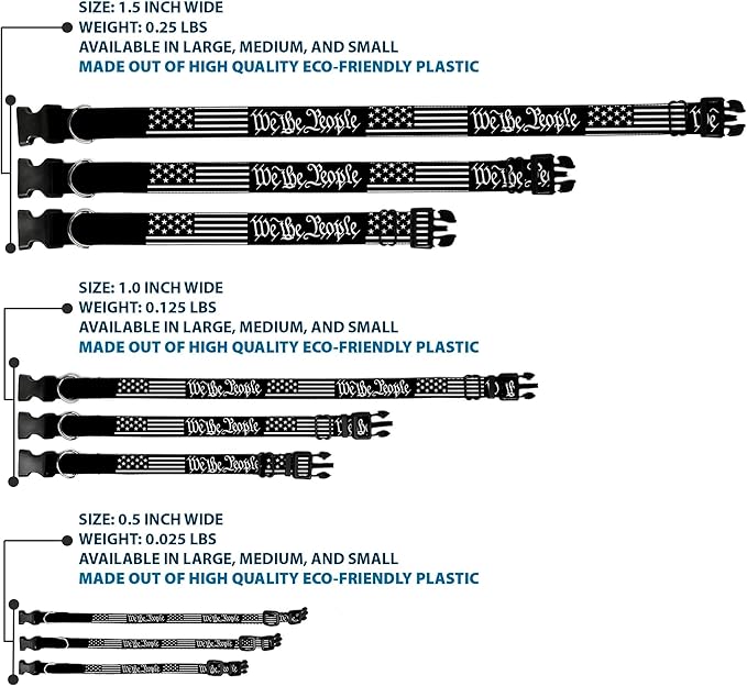 Dog Collar Plastic Clip Americana Flag We The People Black White 8 to 12 Inches 0.5 Inch Wide