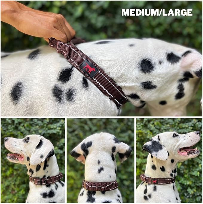 Tuff Pupper Heavy Duty Dog Collar with Handle | Ballistic Nylon Heavy Duty Collar | Padded Reflective Dog Collar with Adjustable Stainless Steel Hardware | Convenient Sizing for All Breeds