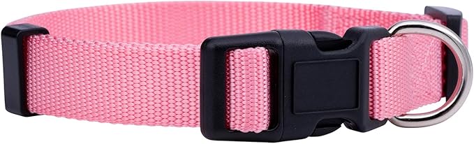 - Pink Dog Collar: These durable nylon dog collars are made of tough nylon that’s impossible to tear. Strong quick release clips reliably secure the colar around any dog’s neck. Metal D-Rings provide a secure attachment point for your leash.