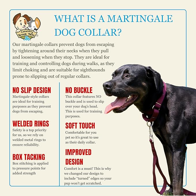 - No Buckle: Martingale dog collars slip easily over the head and tighten gently when pulled, eliminating the need for a buckle; The limited closure ensures the collar won't become too tight, providing gentle control during walks and training sessions