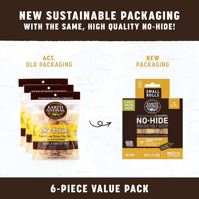 Earth Animal No Hide Small Long Lasting Dog Chew Rolls, Peanut Butter, 2 Count Pack of 3