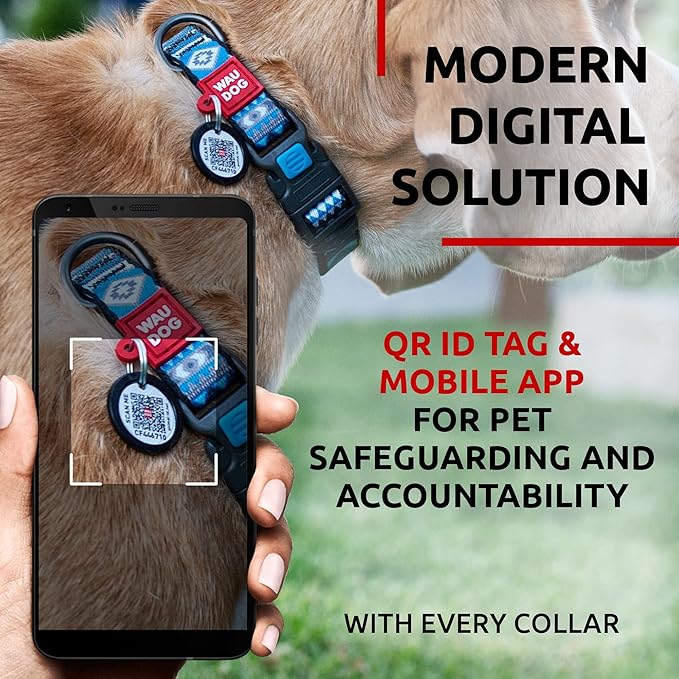 WAUDOG Nylon Dog Collar - Adjustable Dog Collar for Large Dogs, Small & Medium Dogs - Breakaway Puppy Collars for Large Breed Dogs - Boy & Girl Dog Collars with Durable Plastic Buckle and QR Dog Tag